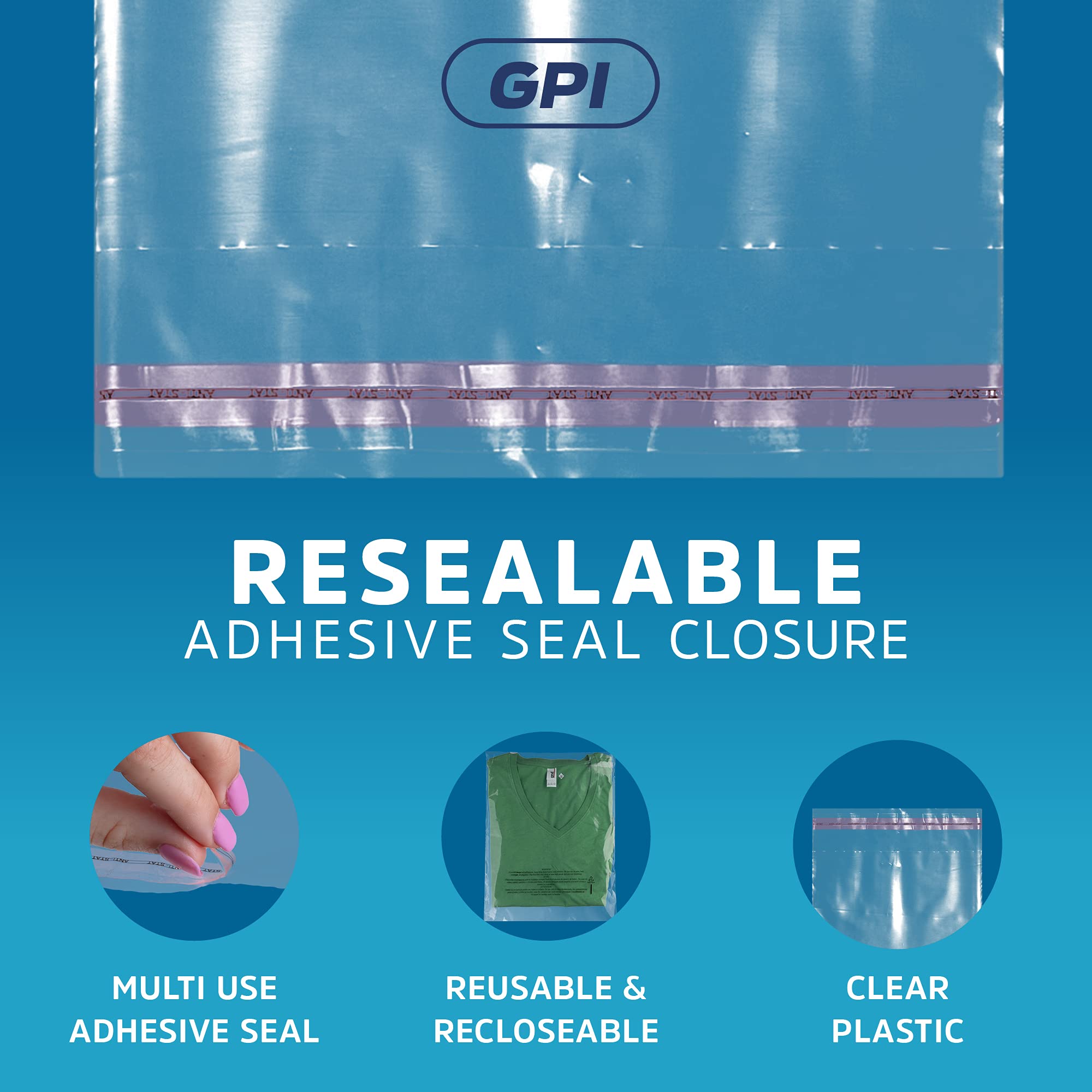 GPI - Case of 1000 6" X 9" Clear Self Seal Poly Bags - 1.5 Mil - Resealable Polybags with Adhesive Strip & Suffocation Warning for Packaging T Shirts Clothing. Perfect for Shipping Supplies with FBA